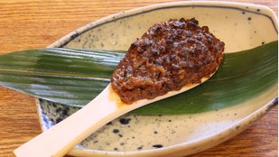 2種類の味噌と軽く炒った蕎麦の実、これに秘伝の調味料を加えて作る”蕎麦味噌”。