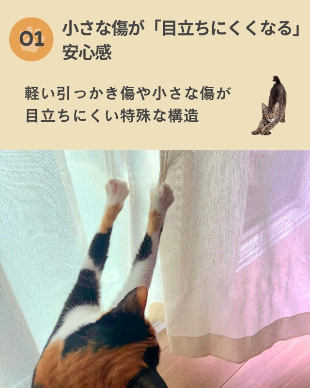 - 猫の引っかき傷が目立ちにくいレースカーテン