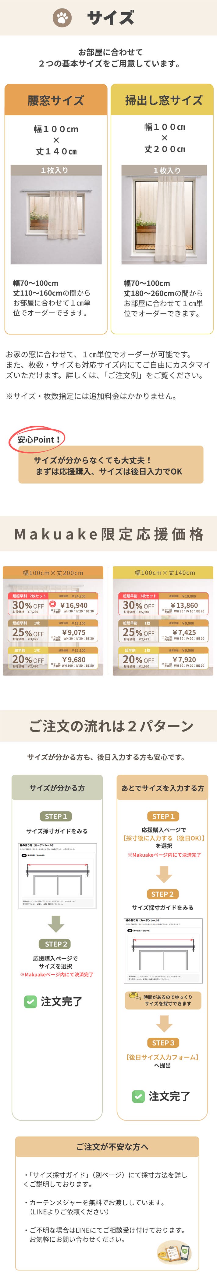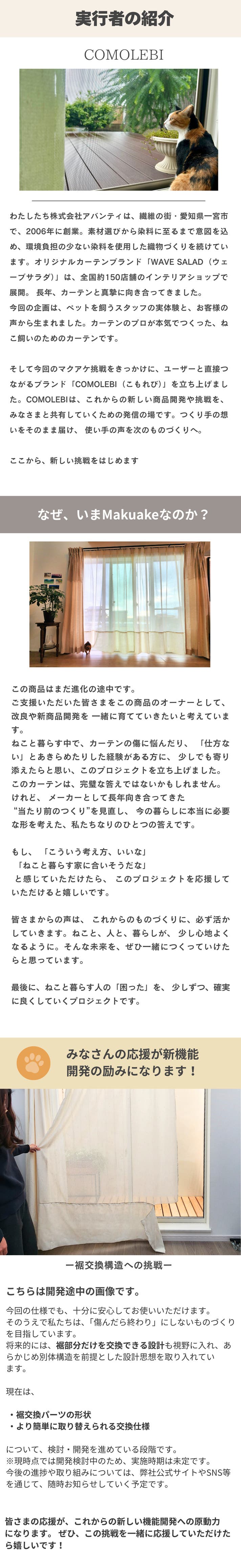 「Makuake(マクアケ)」は、実行者の想いを応援購入によって実現するアタラシイものやサービスのプラットフォームです。このページは、 プロダクトカテゴリの 「「もう傷に悩まない!」ねこ飼いのための傷が目立ちにくいレースカーテン!」プロジェクト詳細ページです。