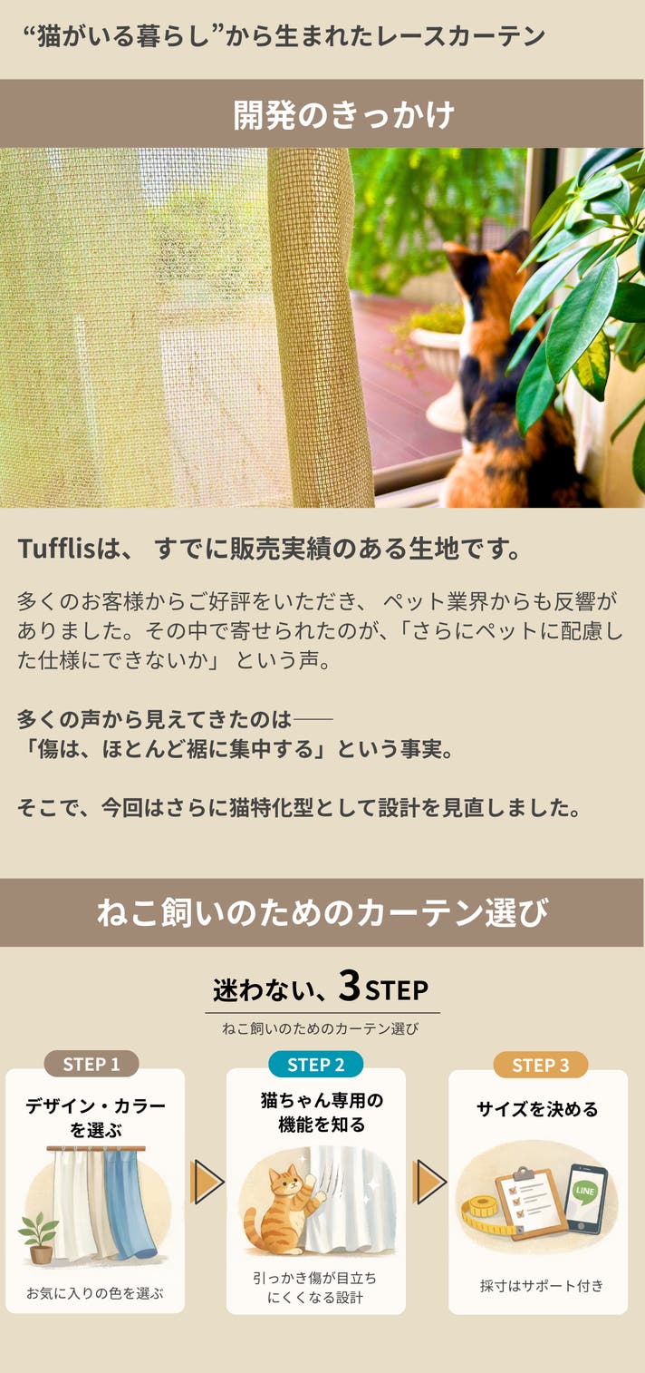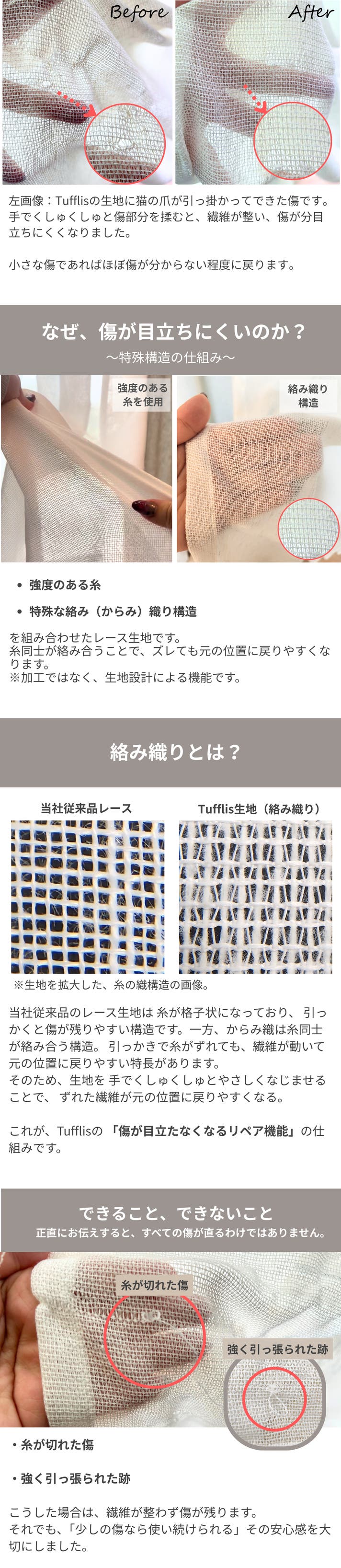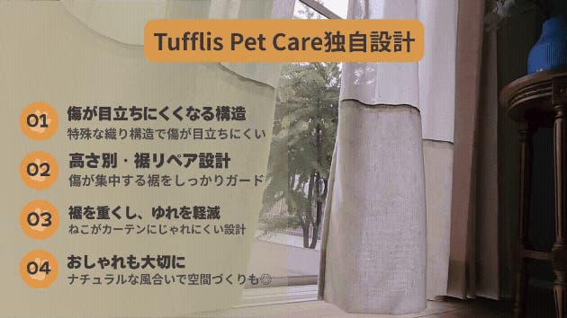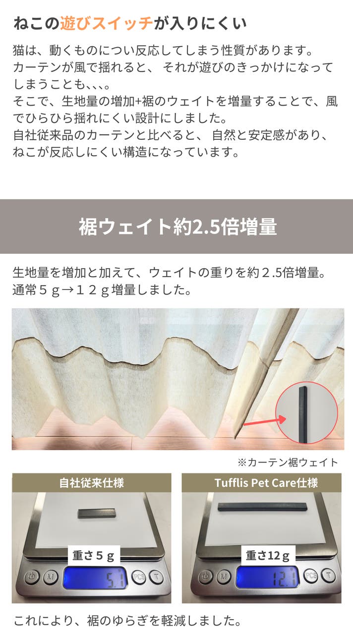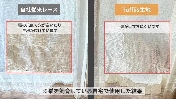 左:Tufflis Pet Care 右:自社従来品のレースカーテン
