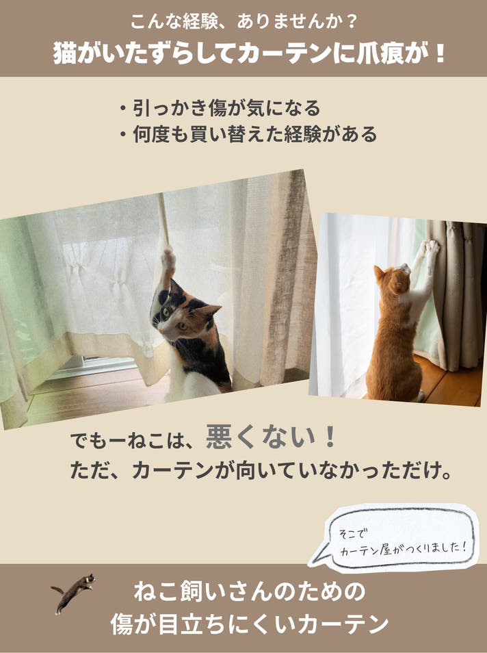 - ナチュラルな風合いでおしゃれな空間づくりに◎人にもねこにも優しいカーテン