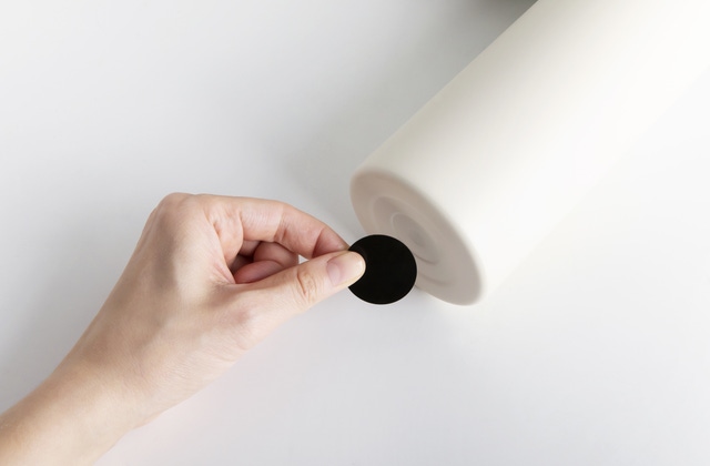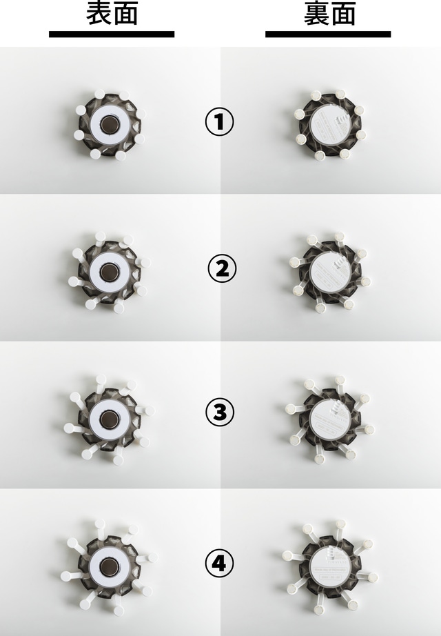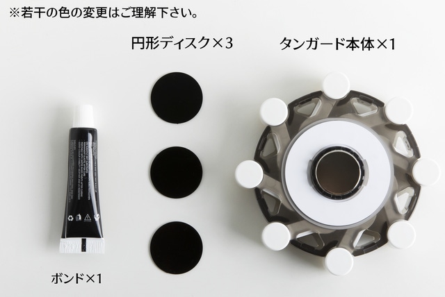 *円形ディスクは磁石に付く材質の鉄板で、タンブラーの底に貼り付けてタンガードに磁力結合させる役割をします。