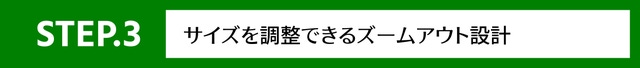 サイズを調整できるズームアウト設計