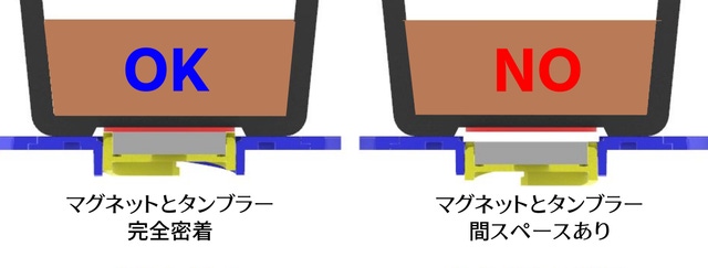 タンガードは、タンブラーの結合力を強化するために磁石の高さ調節で結合力を大きくすることができます。