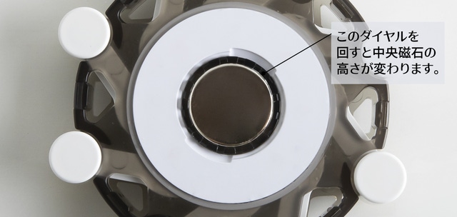 *中央磁石の高低調節を磁石を包んでいるジョグダイヤルを時計方向に回転させて高さを調節できます。