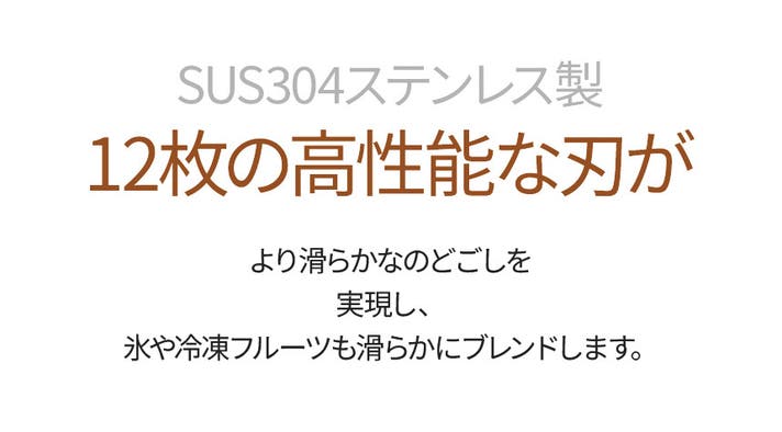 - 12枚刃の強力ミキサーで氷や冷凍フルーツも瞬時に粉砕