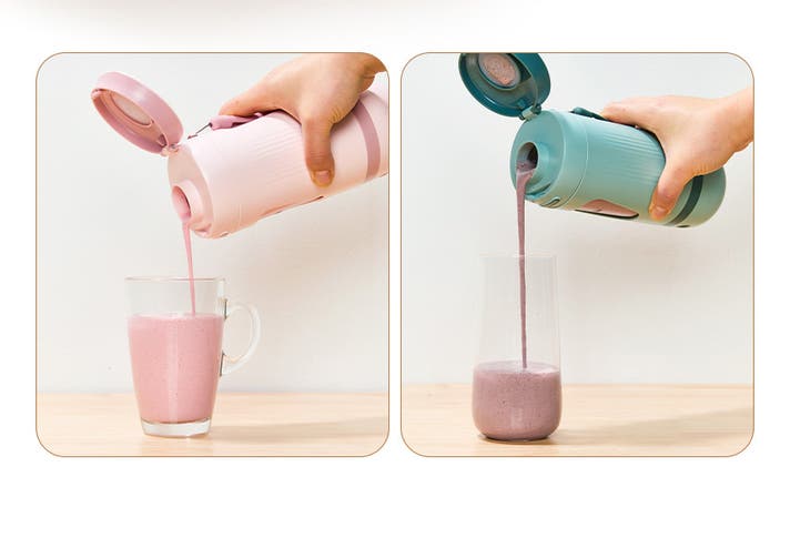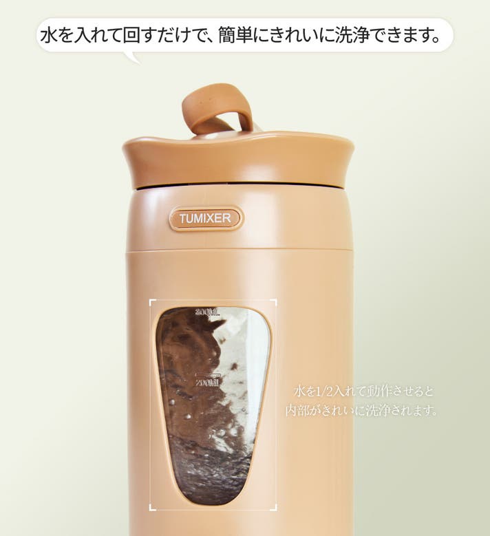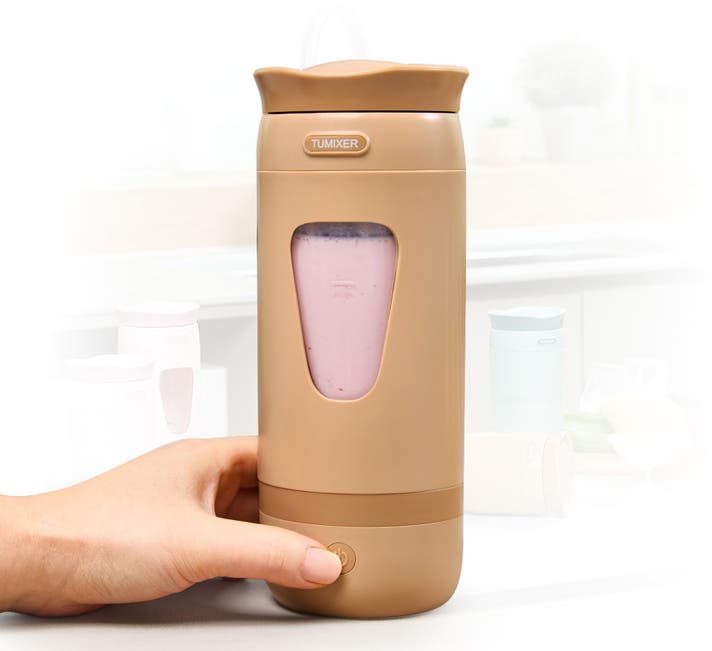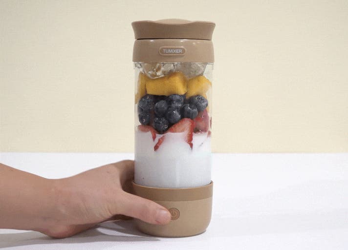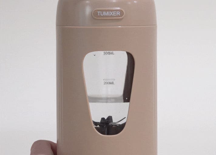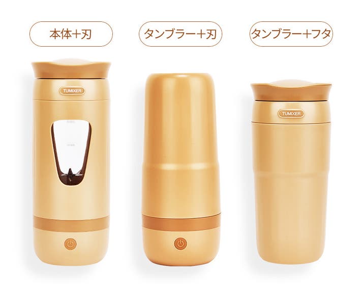 これは、持ち運べるタンブラー型のミキサー。