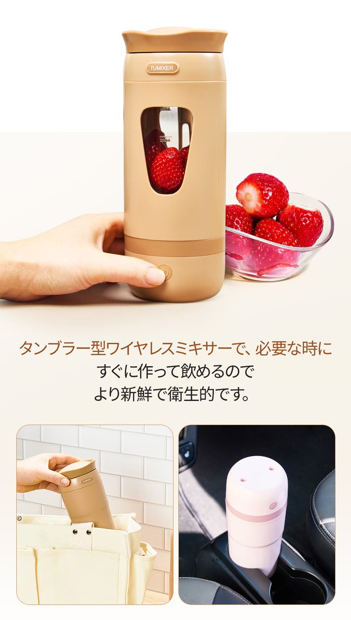 今回のプロジェクトでは、「いつでもどこでも手軽に健康習慣を取り入れてほしい」という想いを込め、TUMIXERの高性能ポータブルタンブラーミキサーを日本の皆さまへお届けします。