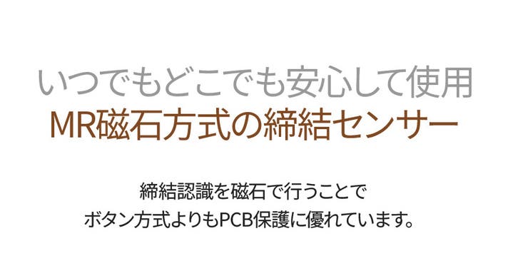 A:MR磁石方式のチェッカーセンサーを採用。刃と本体が正しく装着されないと動作しない設計で誤作動を防止します。