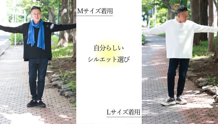 A6)撮影している男性は身長177cm体重70kgです。通常Lサイズ着用ですが、Mサイズで少しゆとりのあるジャストサイズでした。Lサイズだとオーバーサイズでゆったりスタイリングを楽しむ感じです。