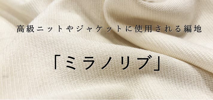 ミラノリブは、リブと袋編みを組み合わせた密なダブルニットの編み組織。平らで張りのある表面が生まれるため、着たときのラインが美しく、適度な重みとドレープが出て、形崩れしにくいのが特徴です。