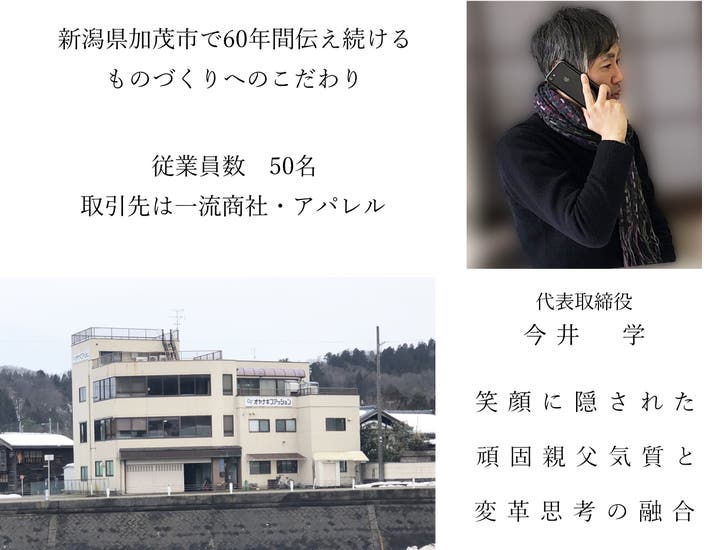 その後、今井氏(写真)は新潟で家業を営んでいたニット製造メーカー㈱オヤナギファッションを継承するため退職。私も2019年に退職しアパレル卸・小売・WEBマーケティングの株式会社REASONの代表取締役として現在に至ります。