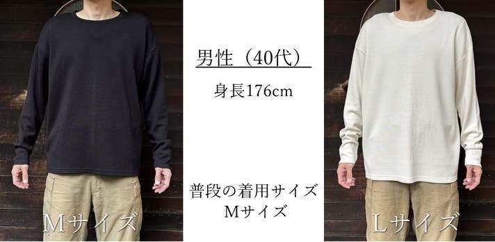男性モデル:身長177cm 普段の洋服 Lサイズ
