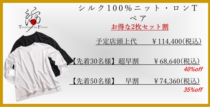 【早割】限定先着50名様 35%オフ お得なペア割 シルク100%ニットロンT