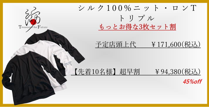 【超早割】限定10名様 45%オフ お得なトリプル シルク100%ニットロンT