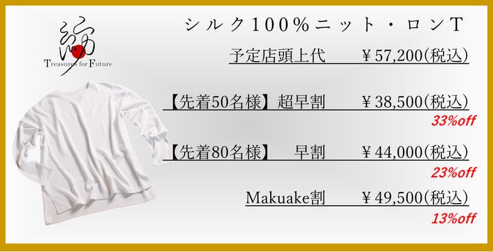 【Makuake割】13%オフ シルク100%ニットロングスリーブTシャツ