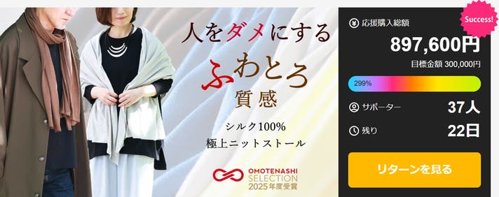 このプロジェクトはAll in型です。目標金額の達成に関わらず、プロジェクト終了日の2026年01月13日までに支払いを完了した時点で購入が成立します。