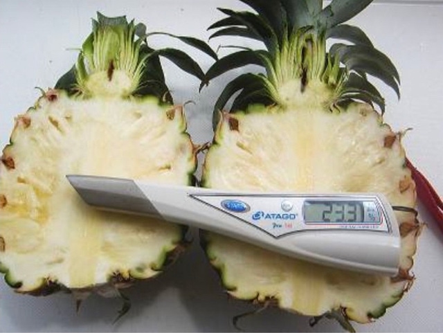 パイナップルの糖度は平均的に16度以上といわれておりますが、西表パイン園の