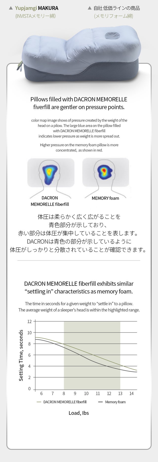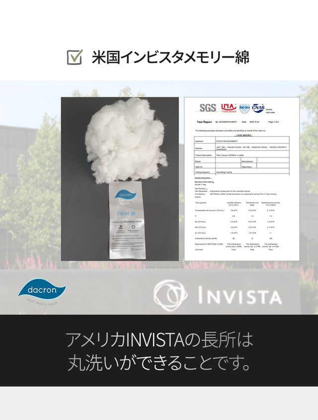 A、アメリカINVISTA社のDACRONブランドで作られた特殊なメモリー綿を使用することにより、現状維持力がよく、変形しにくいです。