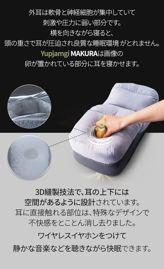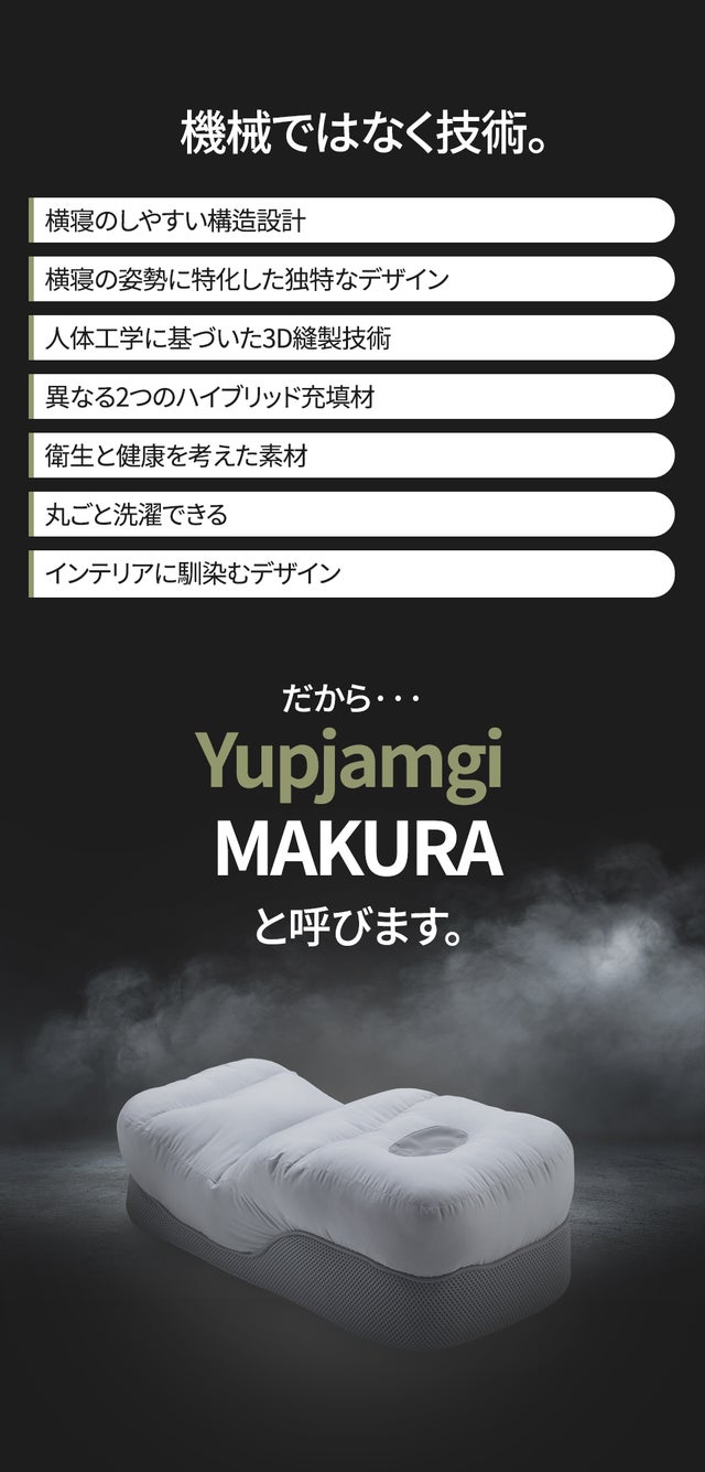 普段横向きで寝る傾向があり、耳と肩が楽な枕はないのかな?と探していたところYupjamgi MAKURAに出会いました。色々な枕を買い比べてみた結果こちらの商品に辿り着き、非常に快適に眠れたのでぜひ日本の皆様にもご紹介をしたくこの度輸入をする運びとなりました。