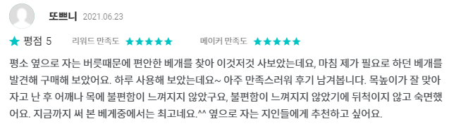 ネイバーストア基準の枕の評価は4.85点と高評価を受けてきています。