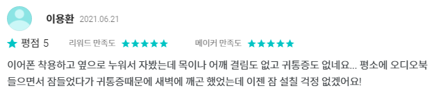 イヤホンをして横になって寝てもしっかり眠れたのがとても気に入ったのでレビューを残そうと思いました。