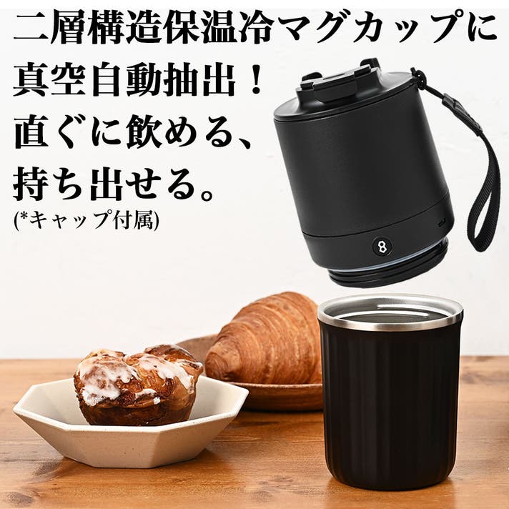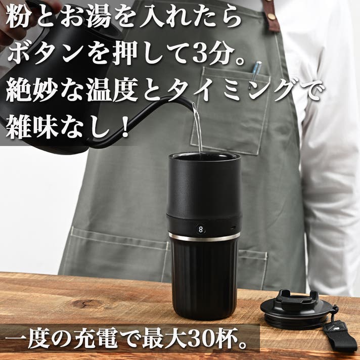 - 満充電で30杯!保温冷カップからそのまま直ぐ飲める、美味しく持ち運べる!『珈琲カップ要らず』