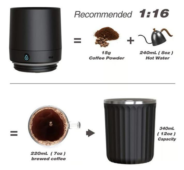 「Turbo Brew」は、コーヒー粉15グラムに対してお湯240ml(約8オンス)という標準的な抽出比率に合わせて設計されています、コーヒーとお湯の比率は1:16で、約220ml(約7オンス)の滑らかでバランスの取れたコーヒーを淹れることができ、計量器などは必要ありません。