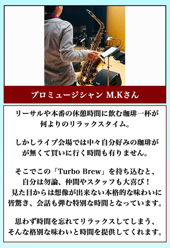 プロのお墨付きも頂いたこの【Turbo Brew】で淹れたコーヒーはまさに絶品とも言える味わい!きっと驚きと感動を覚えるでしょう。