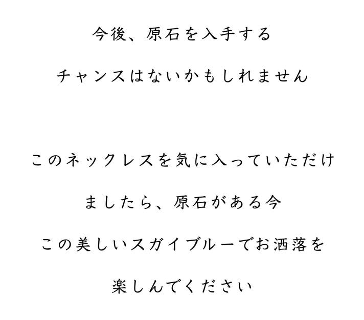 - 閉山前に入手した原石を閉山前の価格にて。国内で研磨するから作製できるネックレス