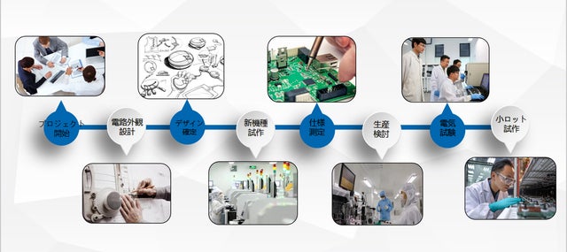 海外には自社工場を持ち、自社のデザイナーが工場のエンジニアとの連携によって、日本及び海外での製品企画提案から量産供給まで一貫したプロセスをサポートいたします。