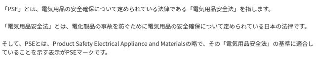 氷霧冷風扇は、電気用品のPSEマークを取得済み、電源アダプタは菱形のPSEマークを取得済み。