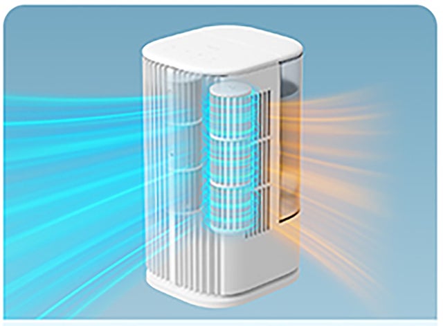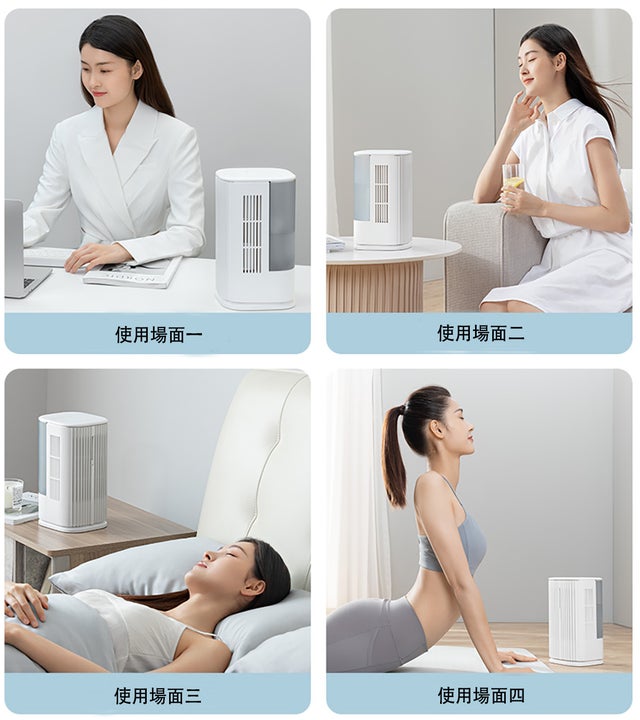 コンパクトなサイズで経済的、省エネ、室内外、オフィス、キャンプなど、場所を問わず、持ち運びしやすいポータブルクーラーとしても使用できるのが特徴です。
