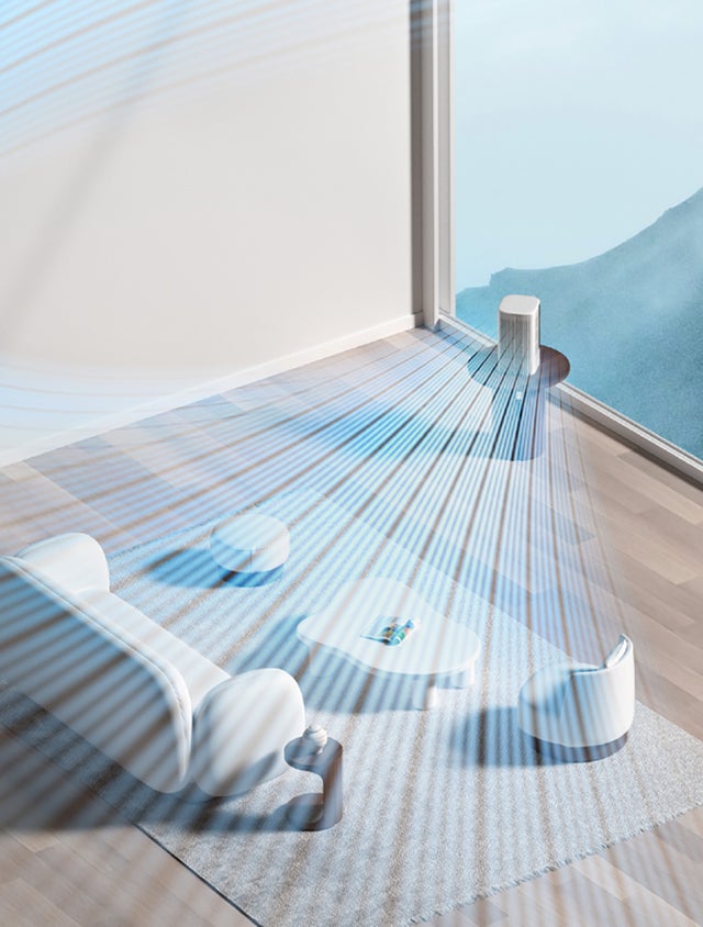細かなミストが風に乗り、潤いもプラスされ、ピンポイントにて涼しく感じられ、パーソナルスペースを快適に保ちます。
