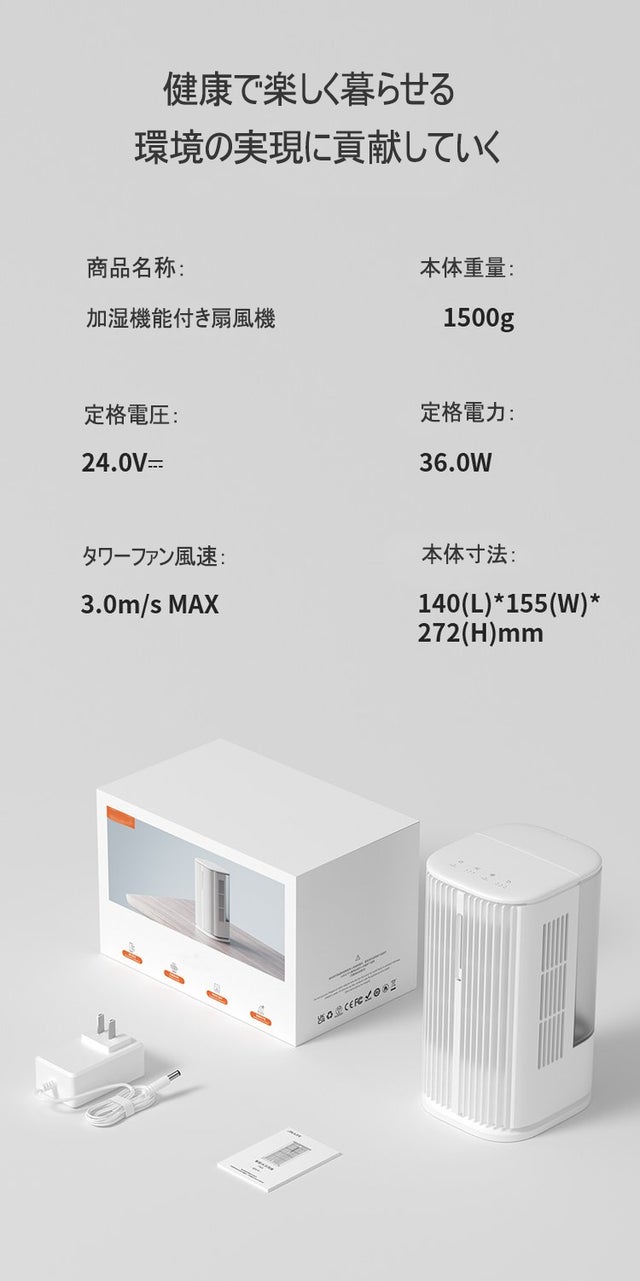 - コンパクトなサイズ、フィルター交換不要、連続運転可、お部屋の加湿、夏の高温に十分対応できます。