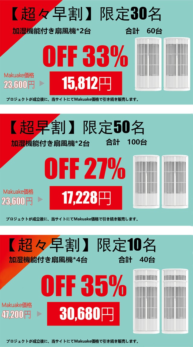 【超々早割33%OFF限定30名】 加湿機能付き扇風機×2台 合計60台