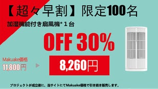 【超々早割30%OFF 限定100名】 加湿機能付き扇風機×1台