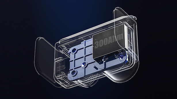 ボディ鏡面部分には表示ランプを内蔵。作動時に点灯することで近未来感を演出。また鏡面ボディは金属類の素材に比べ熱の発散に優れており、スマートフォンや日光によって生じる熱に対して熱発散効果が期待できます。