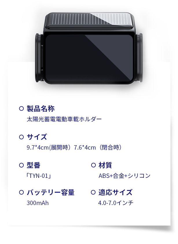 【早割28%OFF・先着70名様限定】太陽光蓄電電動車載ホルダー TYN-01