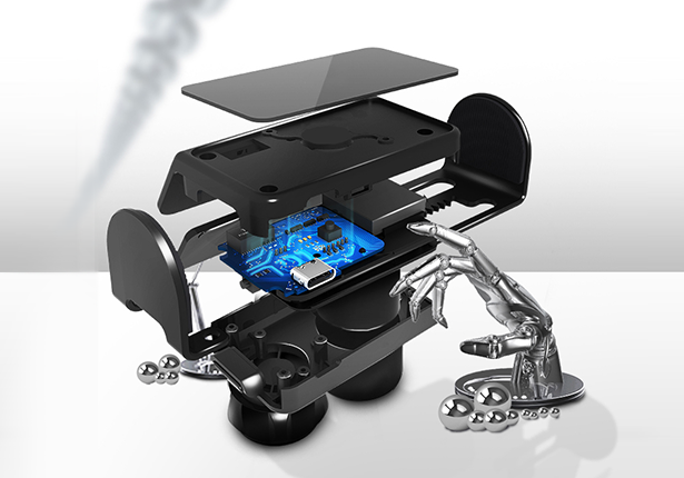 「TYN-01」は電動で自動的にスマートフォンを挟みます。重力でスマートフォンを挟むような機械的な構造とは異なり、内部にある精密な構造がいずれも電力で駆動。搭載されたセンサーによって電動アームが自動的にスマートフォンをホールド。安定し、騒音もありません。