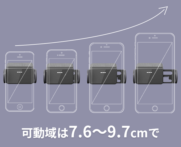 「TYN-01」アームの可動域は7.6~9.7cmで、市販されている4~7インチのスマートフォンに対応しています。