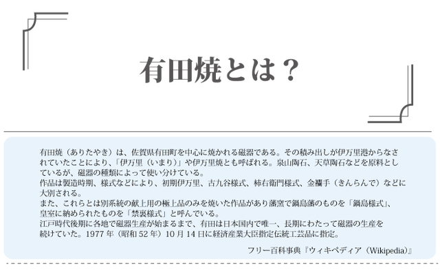 第二弾である今回は、波佐見焼同様400年の歴史ある『佐賀県有田焼』。
