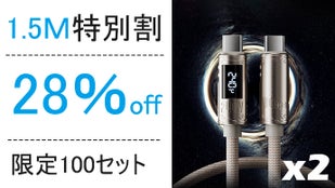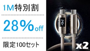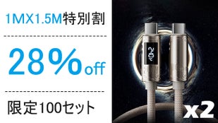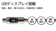 「エクシード240Wケーブル」の一端にはLEDディスプレイがあり、電流、電圧、電力を表示し、現在の充電状況を分かりやすく確認できます。充電速度を把握し、効率をアップできます。