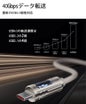 市場に多く出回っているケーブルは、10Gbpsや20Gbpsの転送速度に対応しているものが主流です。この40Gbpsの高速転送と8K映像出力に対応できる「エクシード240Wケーブル」は、データ転送のスピードや高解像度映像対応で圧倒的なパフォーマンスを発揮し、日常的に大容量データを扱う方や、映像編集、ゲームなどを楽しむ方々にとって良い選択肢です。日々の作業がスムーズになり、高品質なコンテンツを楽しむことができます。