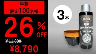 - 新感覚:低寿命、飛散、油汚れ、不自然なギラつきなどタイヤワックスのネガティブポイントを解決