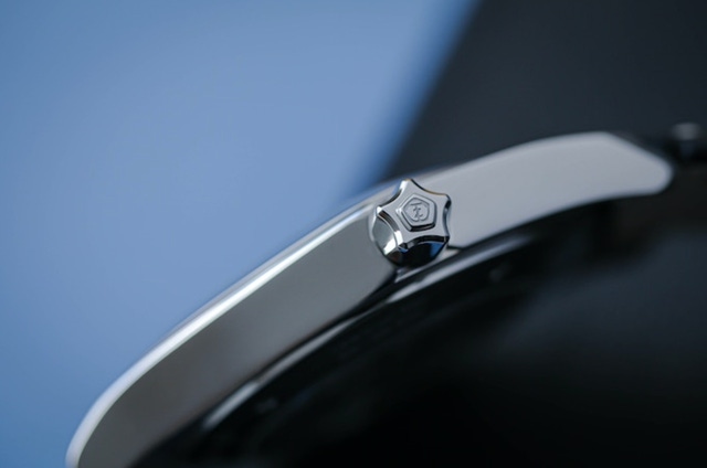 ポリッシュ/サテン仕上げのベゼルの革新的なデザインは、イヴァン・モネの設計した五角形ケースを黄金比に従って丸い形に再構成して完成しました。