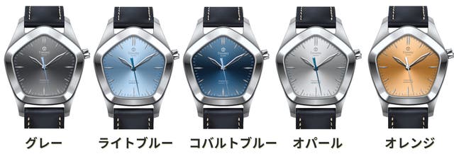 Tzoumyの文字盤の色は、山を愛するイヴァン・モネ自身が、スキーやハイキングで見た景色からインスピレーションを得て選んでいます。サポーター様はリターン購入時に5色から選択できます。
