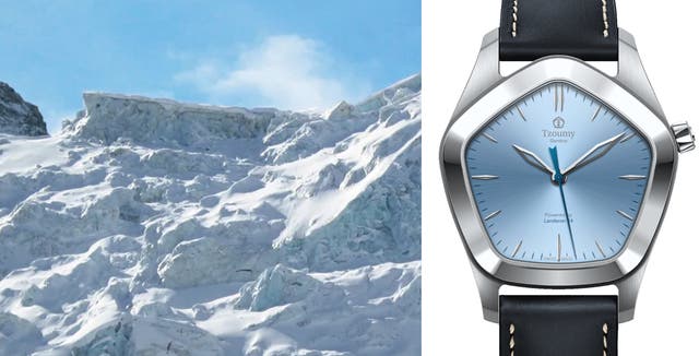 この青色は、一日中光の変化によって色が変わる氷河の色にインスパイアされています。まるで文字盤が太陽の光によって青色が変化するように。