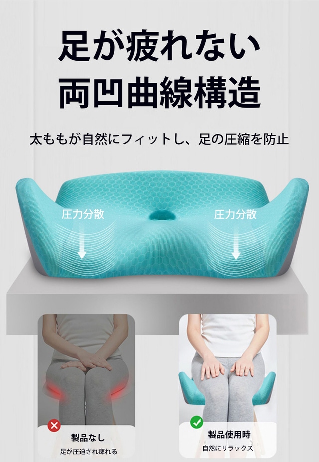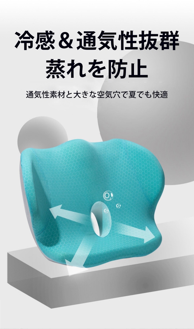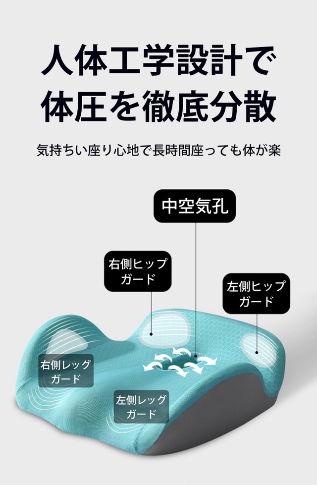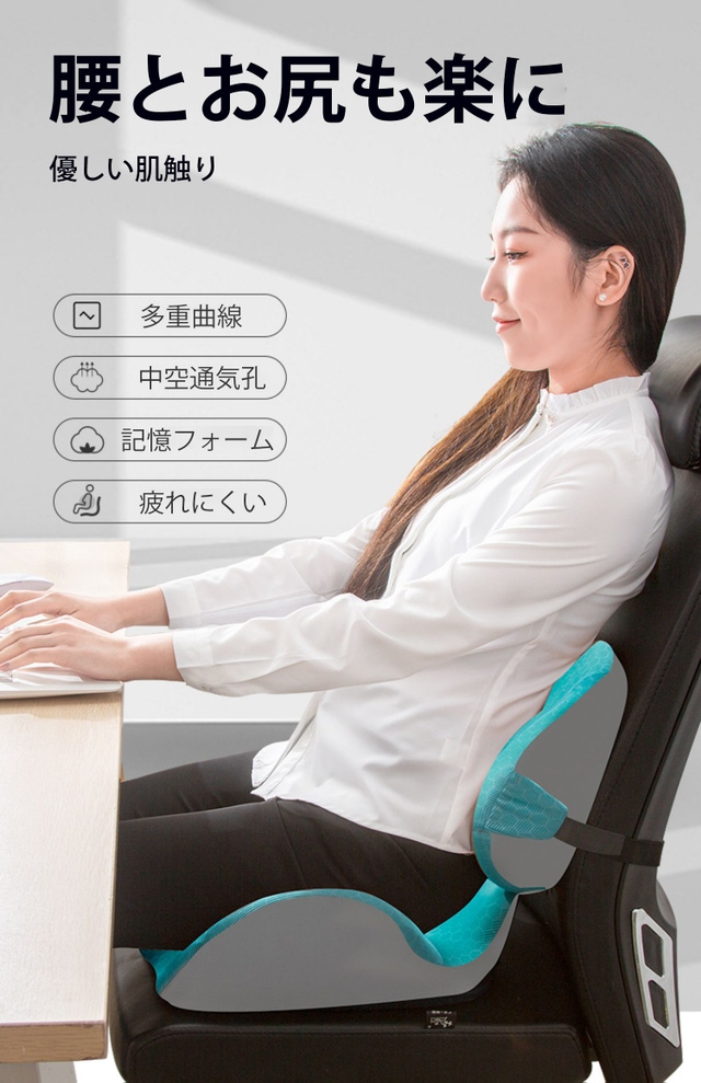 - 体の圧力を分散させてお尻や腰への負担を軽減。長時間座っても身体がラクに!