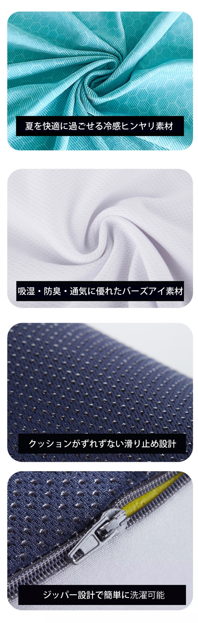 - 冷感&通気性素材を採用。夏でも蒸れずに快適に座れるクッション!